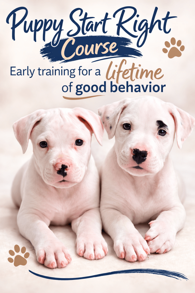 - Topics include: – Potty training & crate training – Chewing & play biting – Basic obedience (sit, down, leash walking, name recognition) – First aid & safety – Socialization guidance – Building confidence and good manners